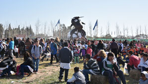 San Juan, 4 de septiembre.- Los guardapolvos y uniformes coparon el INTA Expone Cuyo durante su primera mañana. Agarrados con cordeles, caminado en fila o siguiendo las voces de sus docentes, unos 50.000 alumnos de distintas escuelas recorrieron el predio y se sorprendieron mientras aprendían.