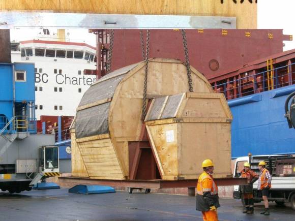 La información oficial señala que el cargamento fue embarcado el pasado 6 de septiembre en el puerto de Rotterdam y llegará a Buenos Aires el próximo 28 de septiembre. ‘’Se calcula que a San Juan estará llegando entre el 4 y 7 de octubre el primer cargamento, que es el más pesado y voluminoso, de 17 containers y de 250 toneladas. Unas semanas después, entre el 17 y 20 de octubre, arribará otra carga menor de piezas sueltas, de aproximadamente 25 toneladas’’, agregó Doña. Para transportar desde Buenos Aires a la provincia de San Juan el cargamento se realizará un megaoperativo de transporte, ya que el funcionario adelantó que será necesaria una flota ‘de unos 20 camiones de gran porte’’. ‘’Hay contenedores de diecinueve mil o diecisiete mil kilos que deben ser trasladados en un solo camión. Otros son de nueve mil, de once mil o de catorce mil, por lo que habrá que ver cómo se ubica cada carga’’, explicó. Precisamente la carga que tendrá el mayor porte es la que trae una de las turbinas con el rotor -del tipo Francis, de 31,1 megavatio-, aunque los estatores, otra de las piezas claves para el armado, también son voluminosas. Todo indica que será un acontecimiento para la provincia cuando eso ocurra, tal como sucedió cuando llegaron las piezas para el dique Caracoles hace unos años.