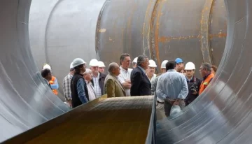 El centro de la recorrida fueron los galpones de la empresa Royon Hnos, que es una de las 7 firmas que están detrás de estas obras. Se pudo observar 4 cilindros de 18 metros de largo, 3,60 metros de diámetro y que pesan 30 toneladas, los que formarán, acoplándose unos a otros, las galerías donde llevan a través de cinta transportadora, el material de la mina de un lugar a otro. La UTE realizará 35 tramos que formarán 7 galerías.