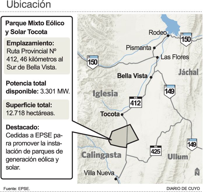 Por fortuna de la naturaleza, la localidad de Tocota -en el límite de los departamentos Calingasta e Iglesia- es la zona de mayor irradiación solar de la provincia, y desde el punto de vista económico conviene ese lugar más que ningún otro, para la producción de energía fotovoltaica. Ese sol acaba de bendecir otra inversión millonaria que promete cambiar la historia del paraje: la compañía de bandera YPF, a través de su presidente Pablo González, anunció ayer que invertirá U$S 200 millones de dólares en la construcción de dos nuevos parques solares en los terrenos que tiene allí la provincia, de 100 MW de potencia cada uno. La inversión se suma a la de U$S 100 millones que está desembolsando para construir otro parque solar en un terreno propio en Iglesia, el proyecto Zonda. Este último, para febrero de 2023 planea estar inyectando 100 MW en una primera etapa, y otros 200 MW en una segunda, equivalente al consumo de 140.000 hogares. Así, en unos años, la división Luz de YPF habrá destinado a esta provincia U$S 300 millones para 3 parques solares, y contribuirá con esa energía renovable a la red nacional por 500 MW. Los proyectos solares de YPF en San Juan habrán superado entonces a la energía eólica de la compañía que hoy generan 400 MW. ‘La necesidad nos lleva a poner foco en energías renovables’, dijo González. El directivo vino a San Juan acompañado por el CEO de YPF Luz, Martin Mandarano; y el director y presidente de YTEC, Roberto Salvaresse. El gobernador Sergio Uñac dijo que "es una jornada histórica para San Juan” al destacar que la provincia ahora es parte ”de una unión estratégica de generación de energías renovables con la empresa más importante que tiene el país que es YPF".