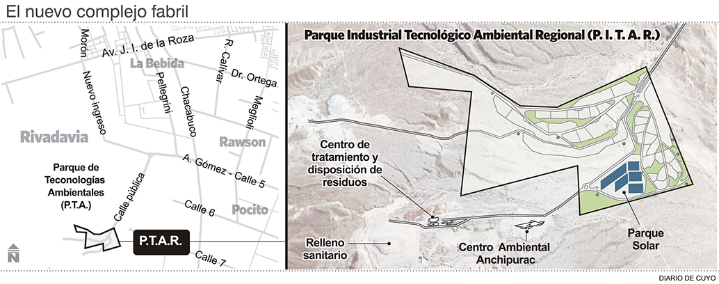 El nuevo complejo industrial está en un predio de 220 hectáreas, en el sector aledaño al Anchipurac, un centro de educación ambiental que se ha convertido en el gran atractivo de la zona. Y será la tercera pata del Complejo Ambiental San Juan, donde ya funciona el centro de tratamiento de residuos urbanos.