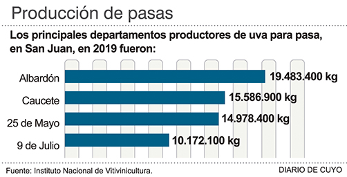 3,5 por ciento de los 2.519.886.200 kilos cosechados el año pasado fueron para elaborar pasas, según datos oficiales del Instituto Nacional de Vitivinicultura.