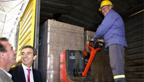 El primer envío concretado hoy correspondió a las bodegas Los Haroldos, La Añorada, Juncal, Tamascal, Uva Negra y Familia Garavaglia.