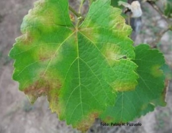 nuestra zona vitícola este ataque no ha sido reportado hasta el presente. En las hojas jóvenes afectadas se pueden observar manchas circulares de bordes difusos