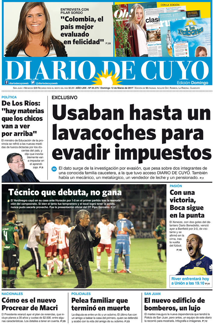 Diario de Cuyo | HOME | Edición impresa Tapa 12 de marzo de 2017 Por Redacción Diario de Cuyo 12/03/2017 · 0:00 Ver los comentarios ›