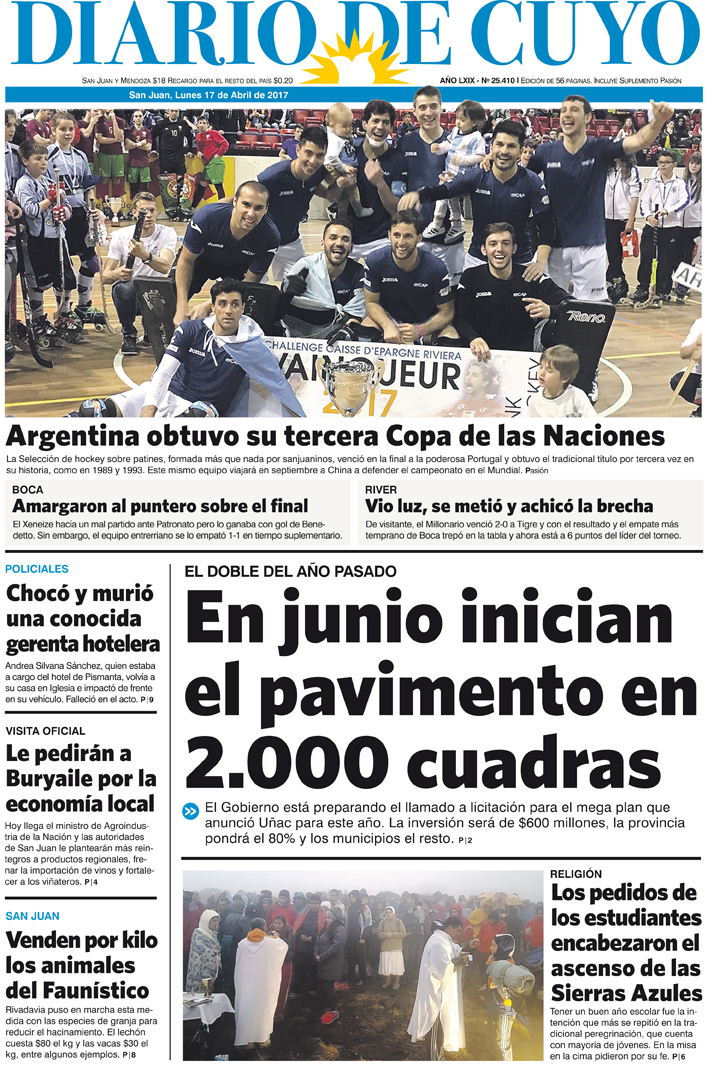 Diario de Cuyo | HOME | Edición impresa Tapa 17 de Abril de 2017 Por Redacción Diario de Cuyo 17/04/2017 · 0:00 Ver los comentarios ›