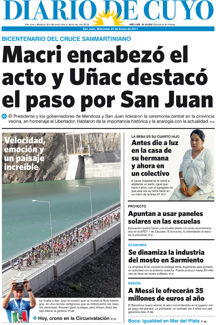 Diario de Cuyo | HOME | Edición impresa Tapa 25 de enero de 2017 Por Redacción Diario de Cuyo 25/01/2017 · 0:00 Ver los comentarios ›