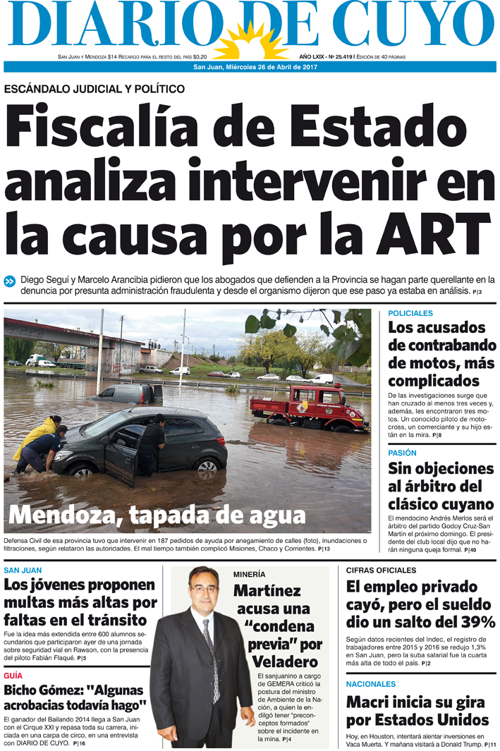 Diario de Cuyo | HOME | Edición impresa Tapa 26 de Abril de 2017 Por Redacción Diario de Cuyo 26/04/2017 · 0:00 Ver los comentarios ›