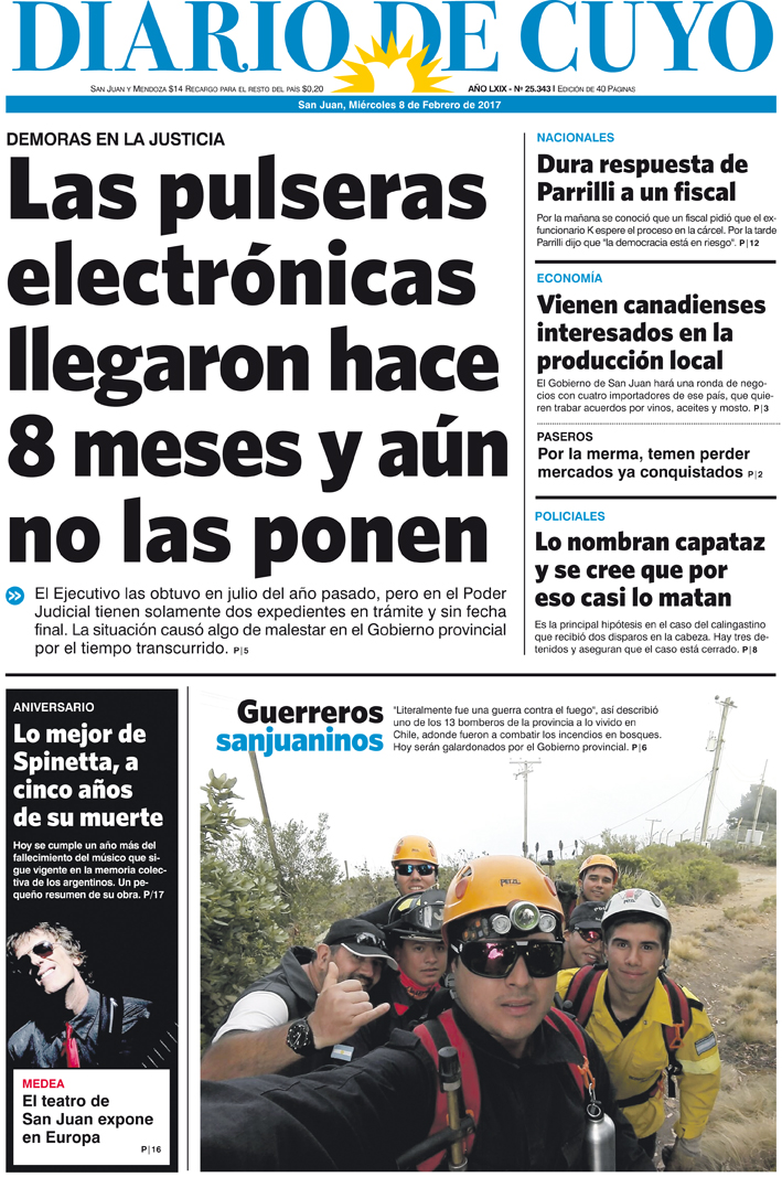 Diario de Cuyo | HOME | Edición impresa Tapa 8 de enero de 2017 Por Redacción Diario de Cuyo 07/02/2017 · 0:00 Ver los comentarios ›