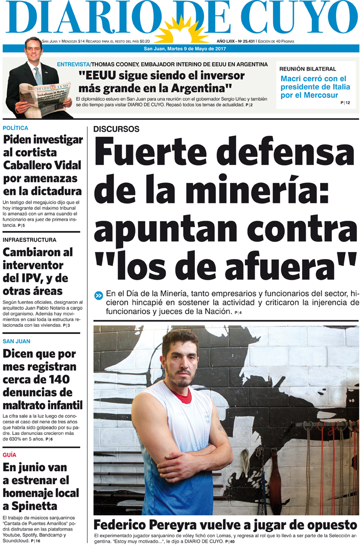 Diario de Cuyo | HOME | Edición impresa Tapa 9 de Mayo de 2017 Por Redacción Diario de Cuyo 08/05/2017 · 0:00 Ver los comentarios ›