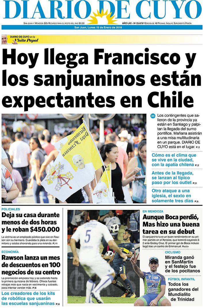 Tapa Edición 15 de Enero del 2018