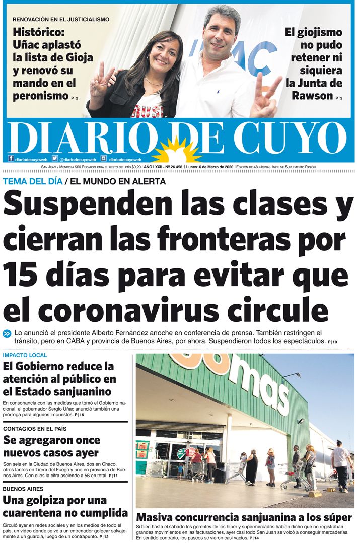 Tapa Edición 16 de Marzo de 2020