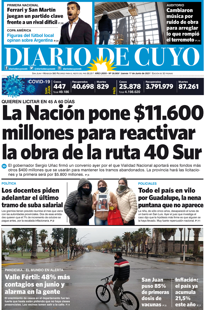 Diario de Cuyo | HOME | Edición impresa Tapa Edición 17 de Junio del 2021 Por Redacción Diario de Cuyo 16/06/2021 · 0:00 Portada 17 de junio by Diario de Cuyo on Scribd Ver los comentarios ›