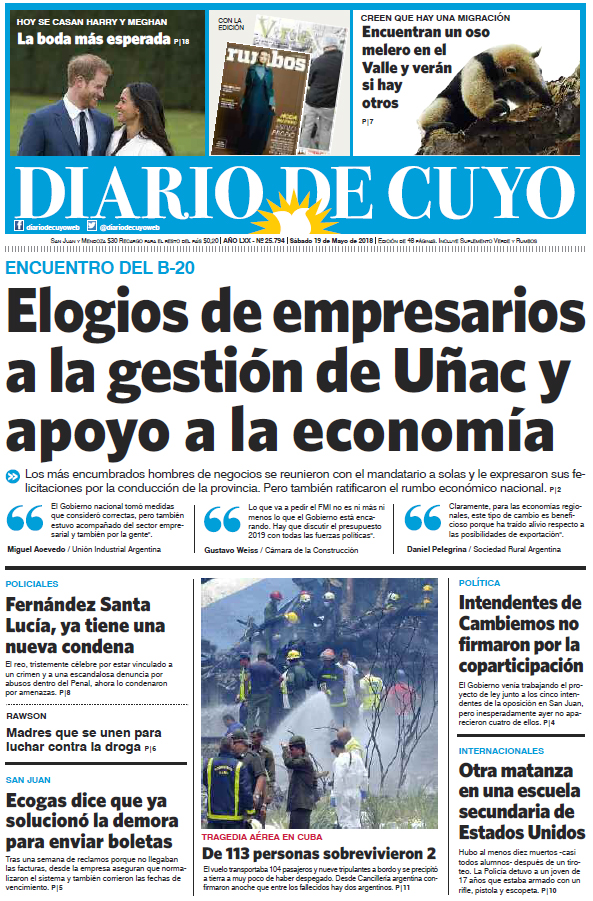 Tapa Edición 19 de Mayo de 2018