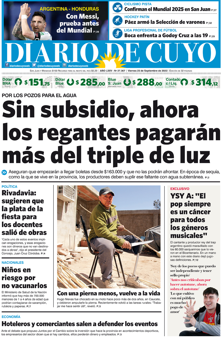 Tapa Edición 23 de Septiembre del 2022