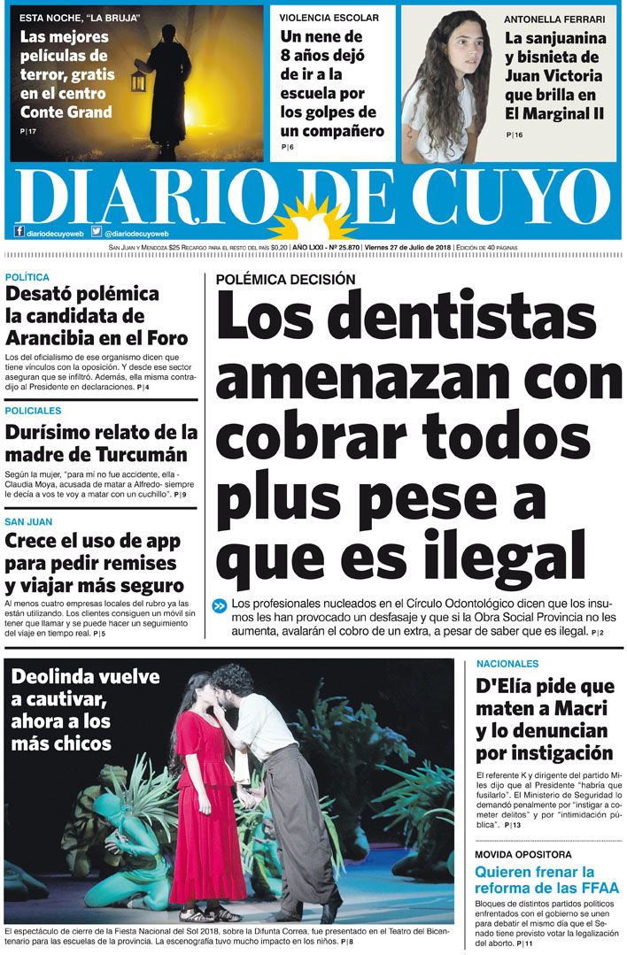 Tapa Edición 27 de Julio de 2018