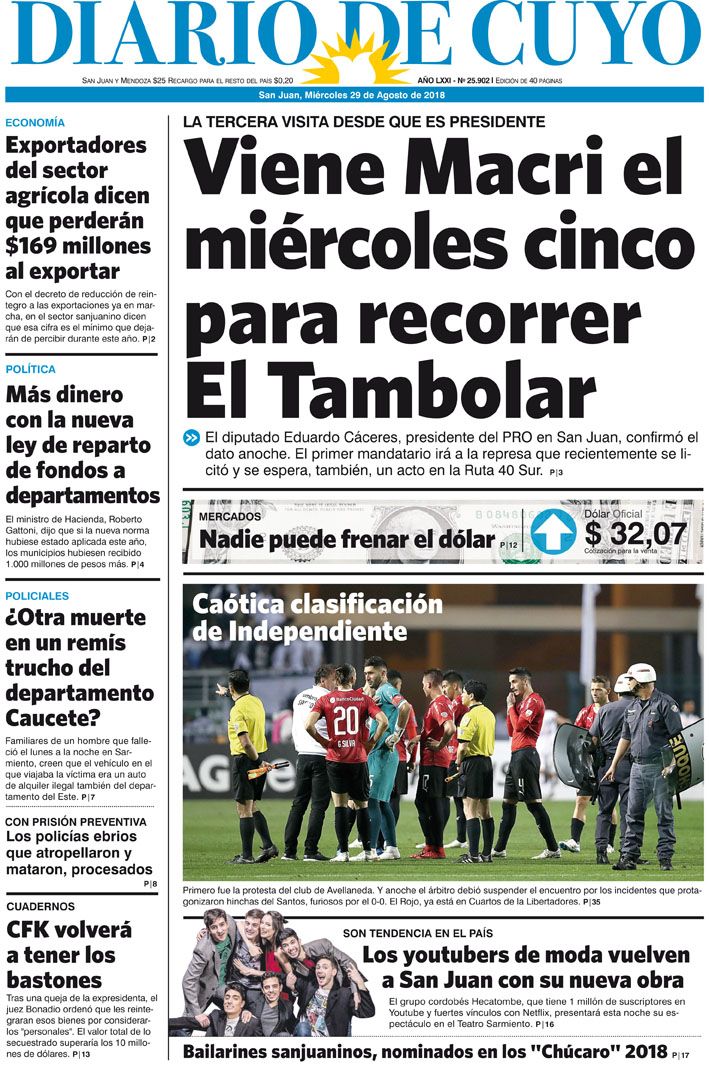 Tapa Edición 29 de Agosto 2018