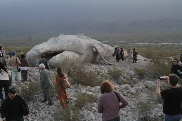 Adrián Villar Rojas. 2010. Una ballena de 28 m de largo en un océano de piedras, en lo alto de una montaña; algo extraordinario, entre el ensueño y la realidad. Saber que la zona hace millones de años fue un mar, abre una nueva significación: ¿Acaso quedó encallada desde entonces?