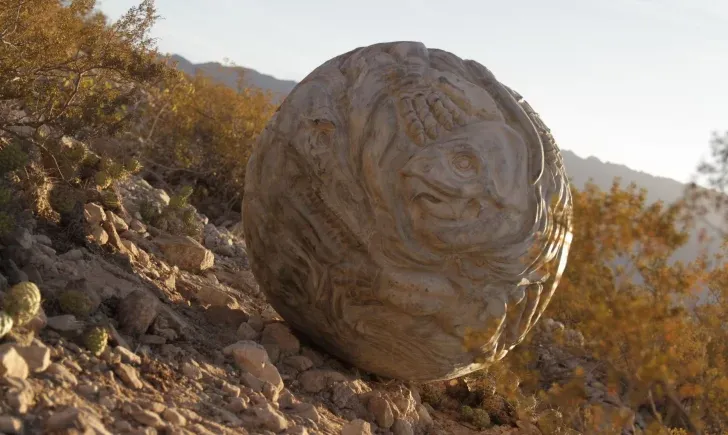 Nicola Constantino. 2023- 2025 / En proceso. Inspirada en Ischigualasto, conectó su proyecto “chanchobola’ con esta tierra, a través de conjunto de esferas de diferentes tamaños que rodean una imponente bola de dos dinosaurios -especies que habitaron la región- entrelazados en combate.