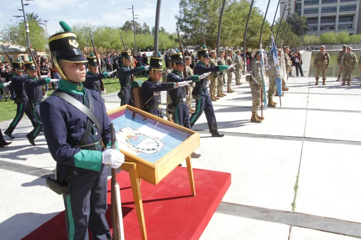 Ayer, los soldados del RIM 22 protagonizaron con fervor un hecho histórico. Fue el relevo de la Guardia de Honor de la Bandera Ciudadana que, por primera vez, se hizo en simultáneo con relevos en otras dos provincias y que contó con la presencia del Ministro de Defensa, Luis Petri. La ceremonia duró 30 minutos, tiempo suficiente para que los uniformados mostraran su adiestramiento y también su costado artístico. El acto se realizó en el explanada del Teatro del Bicentenario con la presencia del gobernador de la provincia, Marcelo Orrego.