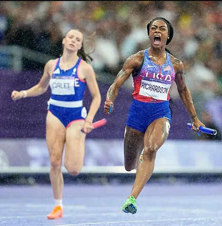 Cal y arena para Estados Unidos en las carreras de posta 4×100 en el atletismo. Las chicas hicieron una carrera espectacular con una definición contundente de Sha’Carri Richardson remontó del tercer al primer puesto. Las otras integrantes de la posta fueron Melissa Jefferson, Twanisha Terry y Gabby Thomas
