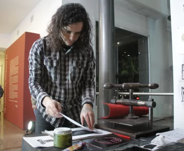 El grabado sigue siendo protagonista este año en el Museo Provincial de Bellas Artes Franklin Rawson, donde -en el marco de la segunda edición del Proyecto Grabado, 2024- el viernes pasado concluyó otra de sus propuestas: el Seminario Nacional. Esta instancia, que convocó a destacados conferencistas, cerró con una feria a cargo de agrupaciones locales y una exposición con estudiantes secundarios que fusionó a distintas generaciones y permitió contemplar no sólo la variedad de técnicas y miradas, sino sobre todo la vitalidad de esta disciplina. En el hall de ingreso, La Nello, el Departamento de Artes Visuales (FFHA – UNSJ), el Museo Tornambé, Galería Presagio, COMUNYtype y Hermanos Kutter desplegaron sus creaciones para exhibición y venta e hicieron demostraciones. Y en el subsuelo, alumnos de 6to. año del Centro Polivalente de Arte (asignatura Taller de Grabado e Impresión III) y del Central Universitario (asignatura Arte y Tecnología) expusieron sus piezas.