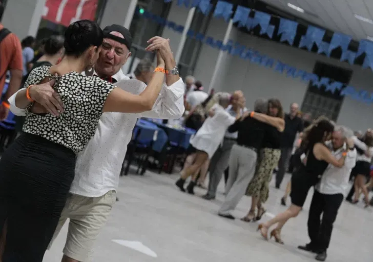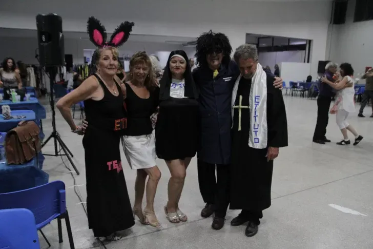 El viernes por la noche tuvo lugar en el Complejo Universitario Islas Malvinas, la denominada ‘milonga de bienvenida’ del Encuentro Tango del Interior (San Juan ETI 2025). Como la sede provincial tuvo una impronta sarmientina el leit motiv fue ‘escolar’ y de esta forma, los bailarines acreditados hicieron su acto de presencia vestidos de estudiantes algunos y otros, de profesores y maestros. Siguiendo la tradición milonguera, la pista del baile se ubicó en el corazón del salón del comedor del CUIM y alrededor las mesas para sentarse, descansar en las pausas y comer o tomar algún refresco. El TDJ Jorge Arce lanzabas las tandas con piezas bailables de las orquestas clásicas de D’arienzo, Troilo y Pugliese. ‘Estas son mis favoritas, las ideales para generar el clima de encuentro y sobre todo, que se pueda bailar’, dijo el musicalizador canadiense. Al reconocerse en persona (sin mediación de WhatsApp, de Facebook o Instagram) era ya una gran experiencia gratificante y rejuvenecedora. Los disfraces como los de del cura o tener una máscara de Sarmiento, le agregaban un componente para divertirse. ‘Para nosotros, lo social es importante. El tango no tiene edad, no tiene condición económica y no te excluye. Vivimos una energía y empatía muy intensa al compartir el metro cuadrado junto a otro’, explicaba Elvira Ortiz, quien era la coordinadora de la jornada.