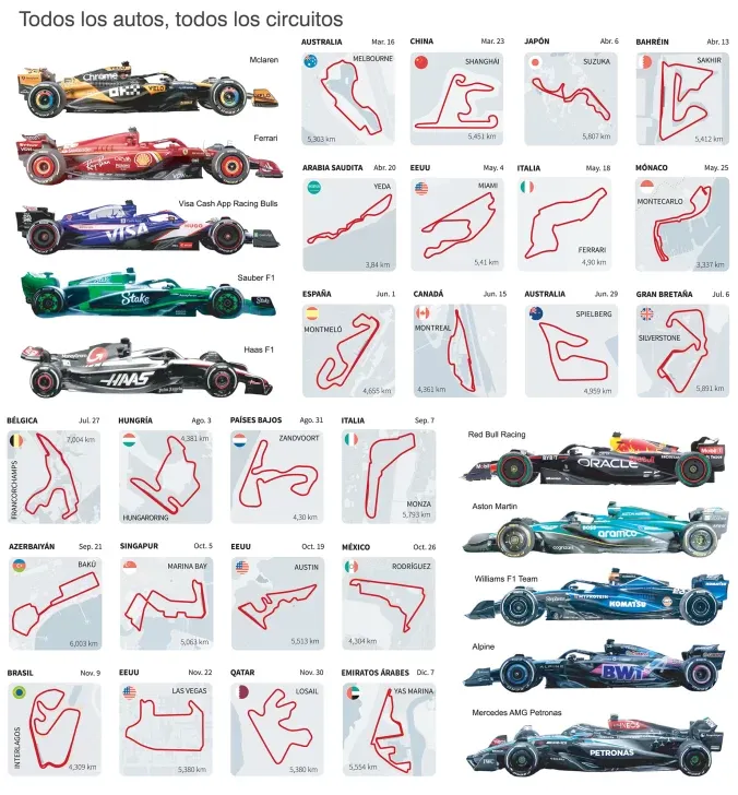 El calendario de la temporada 2025 de Fórmula 1 comenzará el domingo 16, del corriente mes, con el Gran Premio de Australia, y presenta varios cambios con respecto al año anterior.