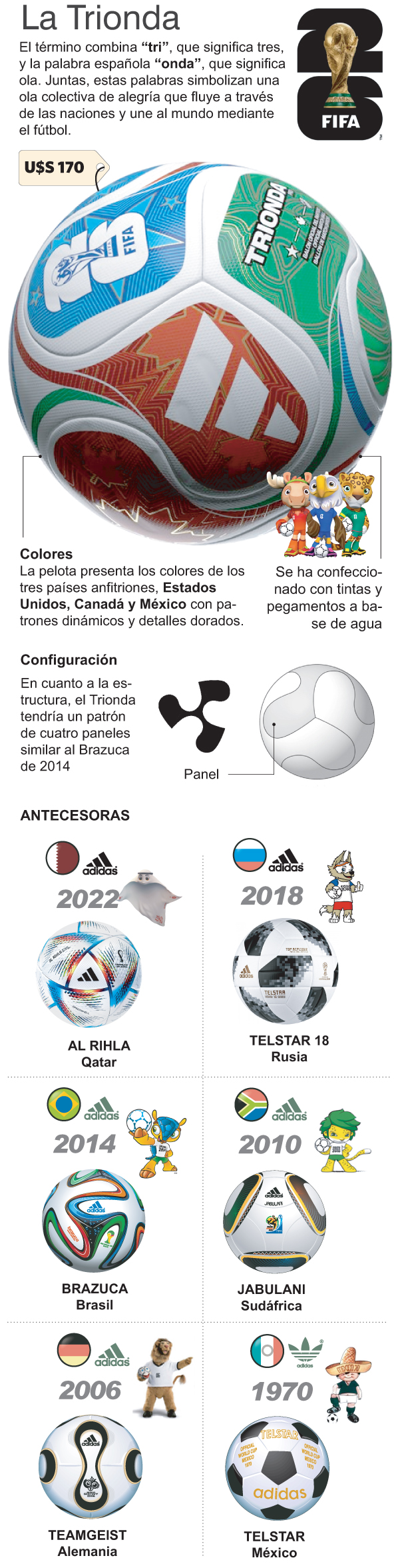 En sintonía con la enorme novedad confirmada este año de que el Mundial de Fútbol 2026 será el primero con la participación de 48 selecciones nacionales, la pelota para ese evento no desentonará: Trionda, tal como la bautizaron, estará equipada con la tecnología Connected Ball, que consiste en un chip interno que registra hasta 500 datos por segundo y los transmite en tiempo real. Este sensor, conectado al sistema VAR, permitirá decisiones más rápidas en jugadas polémicas como fueras de juego o posibles manos.