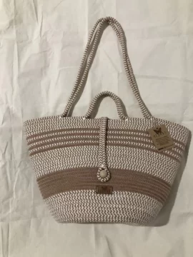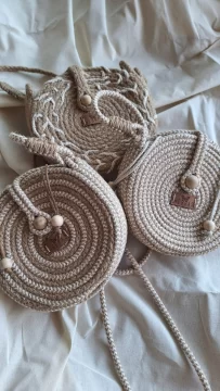 “Al principio las carteras cerraban con un enlazado de tiritas que no las hacían tan seguras, pero quedaban muy lindas. Escuchando las sugerencias de los clientes, agregué una bolsa de lienzo en el interior para contener todo lo que una persona quiera y necesite llevar sin temor a perder nada o a que alguien meta la mano y le robe algo, porque estas bolsas se ajustan y se atan. Aparte ahora todas las carteras cierran con una soguita que agarra un botón de madera muy chic’, explica los avances la emprendedora que para producir estos accesorios utiliza cuerdas de algodón, cuerdas de yute, tela de lienzo y un detallito en ecocuero donde va la marca. A veces, combina no sólo las texturas, también los colores. Su gama favorita es la de los tierra que incluye no solo marrones y ocres, sino también los crudos y naturales, algunos verdes y el negro o azul bien oscuro.