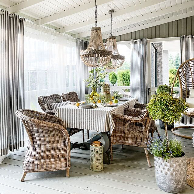 Los muebles y complementos de fibras naturales han sido las protagonistas de terrazas y jardines durante años. ¡Y ahí se mantienen! El toque relajado que aportan este tipo de piezas es ideal para esas zonas de exterior de las que hacemos uso sobre todo cuando llega el buen tiempo. Ahora, ten en cuenta que las fibras naturales pueden estropearse al estar a la intemperie, de manera que deberás protegerlas de la lluvia y guardarlas durante el invierno para que no se estropeen.