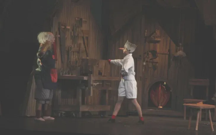 El Gato, el Zorro y el Gato/Zorro le ponen una trampa a Pinocho y lo engañan con la falsa promesa de dinero fácil. En la escena del parque de diversiones, muchos niños son también atraídos por comida rápida y diversión sin límite, para que no puedan pensar por sí mismo. Las escenas de la ballena y del naufragio fueron las más conmovedoras. La despedida tuvo a todo el elenco presente con aplausos.