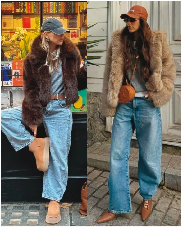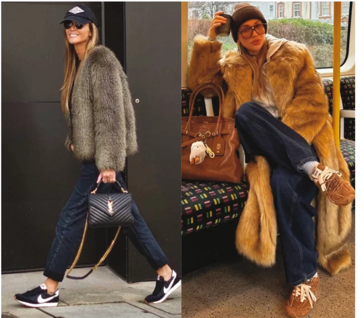 Si querés un look canchero, cómodo y abrigado, combina tu tapado de piel sintética con jeans y zapatillas. Este mix urbano equilibra el glamour del abrigo con la simpleza del denim y la practicidad del calzado sporty. Elegí un jean recto o wide leg y sumá unas zapas blancas o con algún detalle de color. El resultado es un look relajado pero con presencia, ideal para salir de día sin resignar estilo. ¿Un plus? Sumá una gorra de lana o un beanie para completar el outfit y reforzar el mood invernal.