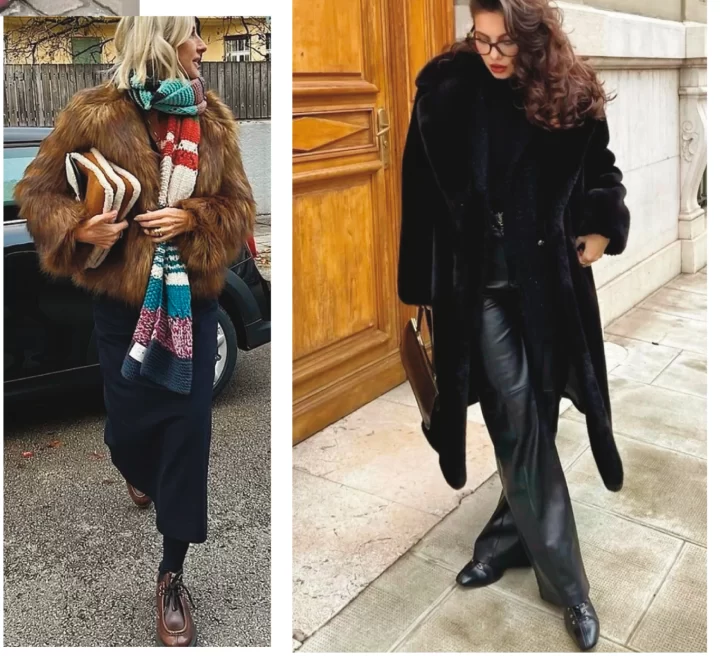 Para un outfit con actitud, combiná tu tapado de piel sintética con una pollera o pantalón de cuero. Esta dupla suma textura, contraste y ese aire urbano que se impone en las calles de invierno. Podés optar por una falda con borcegos, o un pantalón de cuero recto con zapatillas chunky o botas caña media. El abrigo de piel suaviza la fuerza del cuero y equilibra el look con un toque cozy. Ideal para salir con amigas, recorrer la ciudad o simplemente marcar tendencia sin pasar frío.