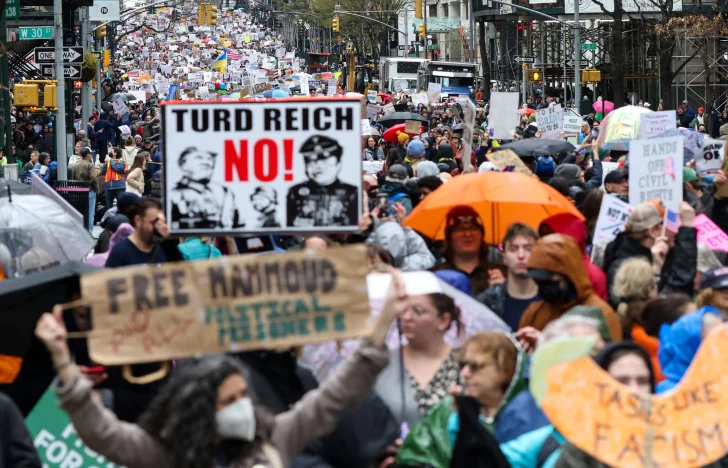Miles de personas se manifestaron ayer sábado en distintos puntos de los EEUU contra las políticas del presidente Donald Trump, bajo el lema “¡Manos Fuera!”, en una protesta que se replicó en los 50 estados del país, incluyendo Boston, Chicago, Nueva York, Colorado y zonas de Nueva Inglaterra.