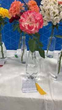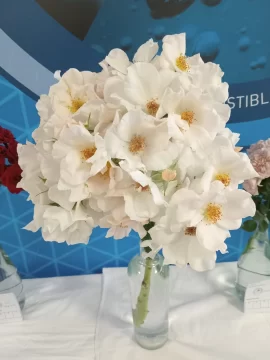 Dicha muestra se realiza todos los años en dicha institución, se divide en dos partes, horticultura y arreglos creativos, luego miembros del jurado recorren la muestra para determinar los premios primero, segundo y tercero, la copa a la mejor rosa y al mejor arreglo floral de rosas. El primer premio que es una copa se entrega a la rosa perfecta en presentación. Es en la primera floración de primavera y para la floración de otoño cuando se lleva a cabo dicho acto. La finalidad es para evaluar el cultivo y tratamiento de cada rosicultora con sus rosas. De este modo cada una recibe un aliciente después de un año de trabajos y cuidados además de adquirir nuevas experiencias en cuanto al estudio del rosal. Se tiene en cuenta la zona que proceden, ya que las rosicultoras tienen sus cultivos en distintos departamentos y puntos de la provincia, entre ellos Pocito, Carpintería, Pedernal, Zonda, Rawson, Rivadavia, Caucete y capital. Esto muestra los distintos suelos sanjuaninos, todos aptos para el cultivo de la Rosa.