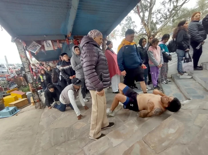 Nahuel Luna no dejó que el cuerpo se le ‘enfriara’ para poder cumplir con su objetivo. Ni bien llegó a Vallecito tras haber caminado por más de 12 horas, desnudó su torso para comenzar a subir la escalinata de espaldas. Fue uno de los promesantes que redoblaron el sacrificio para cumplir sus promesas a la Difunta Correa. Esto es lo que se vivió ayer, Viernes Santo, en el paraje al que llegaron más de 20.000 devotos.
