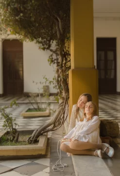 Una siesta-tarde, de un sábado de 2019, sin mucho para hacer fue el puntapié inicial de este ambicioso trabajo artístico. Ella, su hija del medio y una de las amigas –ya que el resto de la familia estaba en otras actividades- salieron a hacer fotos. Para eso llevaron la cámara réflex por supuesto, un canasto con variedad ropa y accesorios antiguos y la inquietud de llegar a todos esos lugares por los que pasa en la vida cotidiana y que por sus conocimientos profesionales integran el listado de sobrevivientes de aquel sismo de características catastróficas para la ciudad. Confiesa que recién cuando editaba el material, se percató que en esas fotos estaban sus rutinas laborales. ‘Lo que hice fue mezclar lo que hago en con niños y familias – lo que se llama Fotografía Newborn o sesiones de embarazadas y familias, también fotolibros de recuerdos- con las fotografías de edificios. Salió jugando, ni más ni menos’’, se confiesa la profesional que es docente universitaria y además trabaja en la Dirección de Patrimonio Provincial.