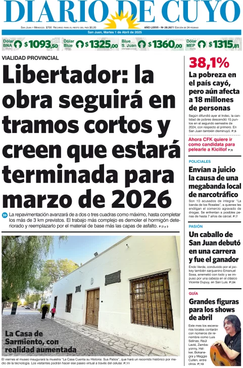 Diario de Cuyo | HOME | Edición impresa Tapa Edición 01 de Marzo de 2025 Por Redacción Diario de Cuyo 01/03/2025 · 4:28 Escuchar la noticia Escuchar la noticia Your browser doesn’t support HTML5 audio Ver los comentarios ›