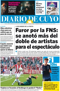 Diario de Cuyo | HOME | Edición impresa Tapa Edición 01 de Septiembre de 2024 Por Redacción Diario de Cuyo 01/09/2024 · 4:00 Escuchar la noticia Escuchar la noticia Your browser doesn’t support HTML5 audio Ver los comentarios ›
