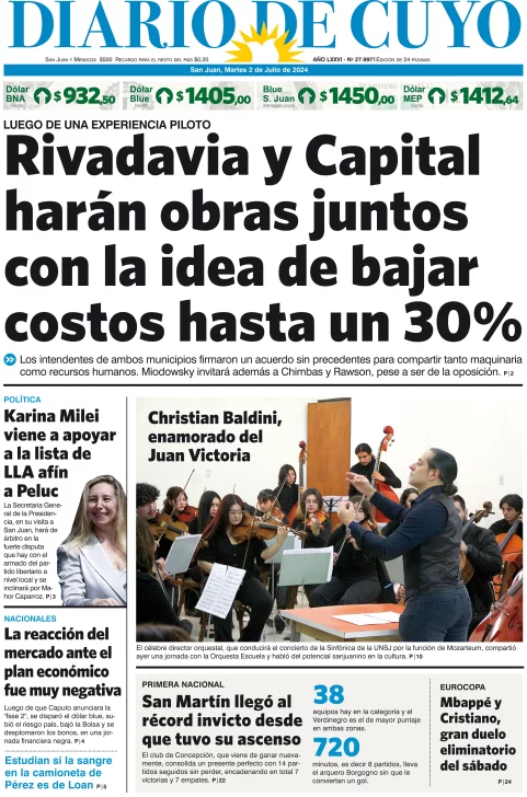 Diario de Cuyo | HOME | Edición impresa Tapa Edición 02 de Julio del 2024 Por Redacción Diario de Cuyo 02/07/2024 · 4:00 Escuchar la noticia Escuchar la noticia Your browser doesn’t support HTML5 audio Ver los comentarios ›