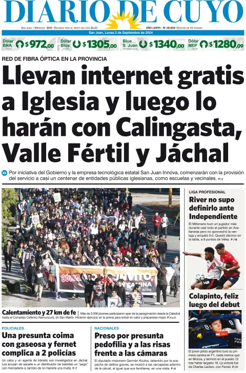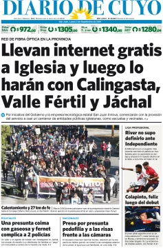 Diario de Cuyo | HOME | Edición impresa Tapa Edición 02 de Septiembre del 2024 Por Redacción Diario de Cuyo 02/09/2024 · 4:00 Escuchar la noticia Escuchar la noticia Your browser doesn’t support HTML5 audio Ver los comentarios ›
