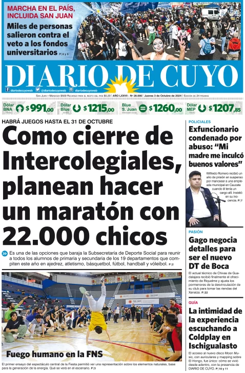 Diario de Cuyo | HOME | Edición impresa Tapa Edición 03 de Octubre de 2024 Por Redacción Diario de Cuyo 03/10/2024 · 4:00 Escuchar la noticia Escuchar la noticia Your browser doesn’t support HTML5 audio Ver los comentarios ›