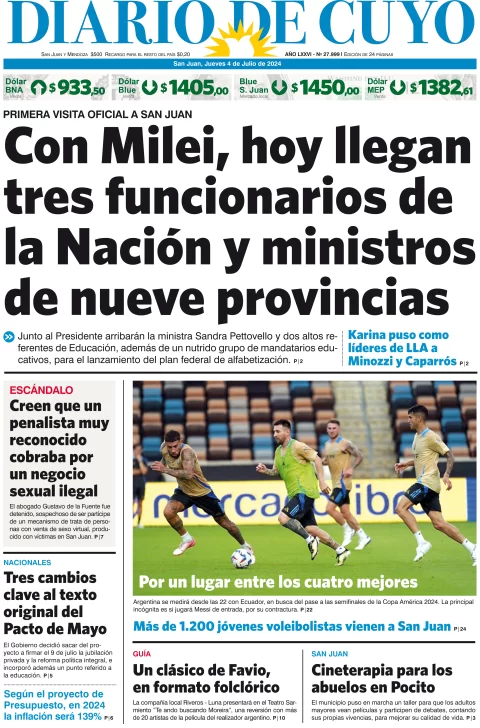 Diario de Cuyo | HOME | Edición impresa Tapa Edición 04 de Julio del 2024 Por Redacción Diario de Cuyo 04/07/2024 · 4:00 Escuchar la noticia Escuchar la noticia Your browser doesn’t support HTML5 audio Ver los comentarios ›