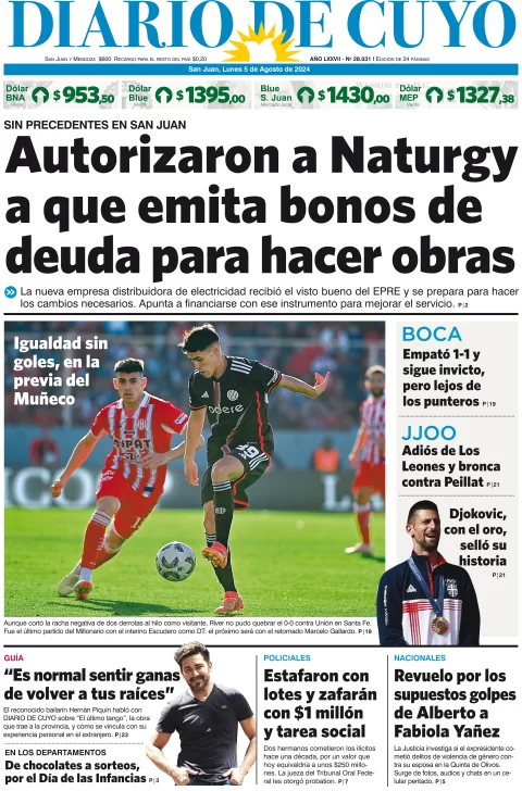 Diario de Cuyo | HOME | Edición impresa Tapa Edición 05 de Agosto del 2024 Por Redacción Diario de Cuyo 05/08/2024 · 4:00 Escuchar la noticia Escuchar la noticia Your browser doesn’t support HTML5 audio Ver los comentarios ›
