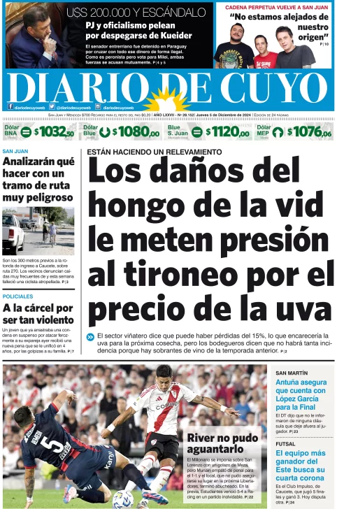 Diario de Cuyo | HOME | Edición impresa Tapa Edición 05 de Diciembre de 2024 Por Redacción Diario de Cuyo 05/12/2024 · 4:00 Escuchar la noticia Escuchar la noticia Your browser doesn’t support HTML5 audio Ver los comentarios ›