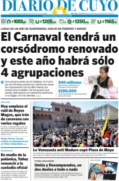 Diario de Cuyo | HOME | Edición impresa Tapa Edición 05 de Enero de 2025 Por Redacción Diario de Cuyo 05/01/2025 · 4:00 Escuchar la noticia Escuchar la noticia Your browser doesn’t support HTML5 audio Ver los comentarios ›