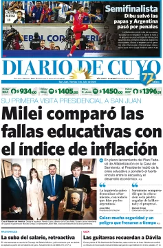 Diario de Cuyo | HOME | Edición impresa Tapa Edición 05 de Julio del 2024 Por Redacción Diario de Cuyo 05/07/2024 · 4:00 Escuchar la noticia Escuchar la noticia Your browser doesn’t support HTML5 audio Ver los comentarios ›