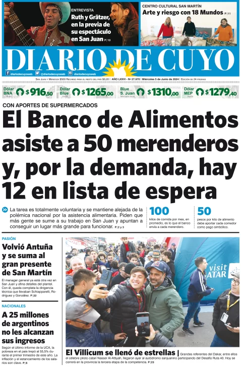 Diario de Cuyo | HOME | Edición impresa Tapa Edicion 05 de Junio del 2024 Por Redacción Diario de Cuyo 05/06/2024 · 4:00 Escuchar la noticia Escuchar la noticia Your browser doesn’t support HTML5 audio Ver los comentarios ›