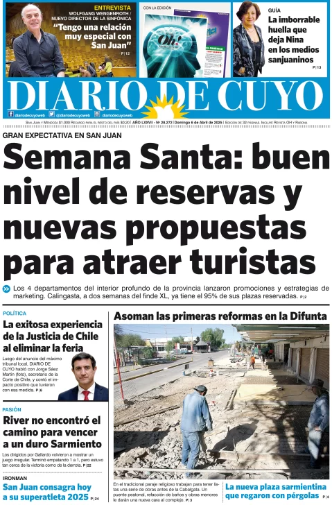 Diario de Cuyo | HOME | Edición impresa Tapa Edición 06 de Abril de 2025 Por Redacción Diario de Cuyo 06/04/2025 · 4:00 Escuchar la noticia Escuchar la noticia Your browser doesn’t support HTML5 audio Ver los comentarios ›